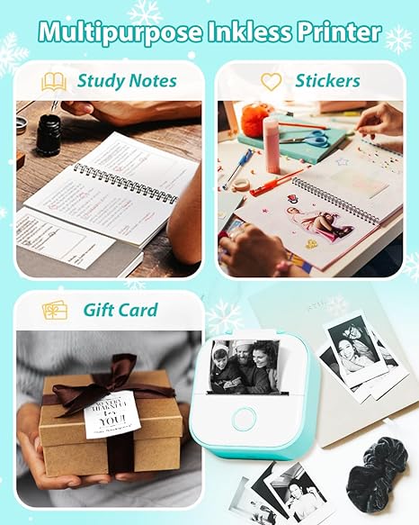 Portable & Versatile Thermal Printer. T02 mini printer is a compact and versatile inkless printer. It's perfect for students and creative individuals who need to print photos, texts, or stickers on-the-go. Its mini design ensures easy portability, making it an ideal pocket-sized thermal printer.